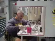 The gas analysis laboratory is equipped for the precise analysis of gases, and it is used to evaluate diving-related problems such as offgassing and contaminant control. The laboratory's analytical capabilities include gas chromatography, mass spectrometry, and infrared spectroscopy. The facility is currently used to develop reliable and rapid screening methods and analyzers for the Fleet.[45][46]