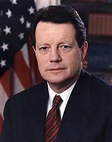 The United States secretary of energy is the head of the United States Department of Energy, a member of the Cabinet of the United States, and fifteenth in the presidential line of succession. The position was formed on October 1, 1977, with the creation of the Department of Energy when President Jimmy Carter signed the Department of Energy Organization Act.[2] Originally the post focused on energy production and regulation. The emphasis soon shifted to developing technology for better and more efficient energy sources as well as energy education. After the end of the Cold War, the department's attention also turned toward radioactive waste disposal and maintenance of environmental quality.[3] Former secretary of defense James Schlesinger was the first secretary of energy, who was a Republican nominated to the post by Democratic president Jimmy Carter, the only time a president has appointed someone of another party to the post. Schlesinger is also the only secretary to be dismissed from the post.[4] Hazel O'Leary, Bill Clinton's first secretary of energy, was the first female and African-American holder.[5] The first Hispanic to serve as Energy Secretary was Clinton's second, Federico Peña.[6] Spencer Abraham became the first Arab American to hold the position on January 20, 2001, serving under the administration of George W. Bush. Steven Chu became the first Asian American to hold the position on January 20, 2009, serving under the administration of Barack Obama. He is also the longest-serving secretary of energy and the first individual to join the Cabinet after having received a Nobel Prize.