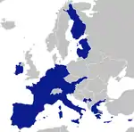 The United States of Europe (USE), also known as the Federal States of Europe (FSE),[1] the European State,[2][3] the European Superstate, the European Federation and Federal Europe, is the hypothetical scenario of a sovereign superstate in Europe (similar to the United States of America), organised as a federation of the member countries of the European Union (EU), as contemplated by political scientists, politicians, geographers, historians, futurologists and fiction writers. At present, while the EU is not a federation, various academic observers regard it as having some of the characteristics of a federal system.[1]