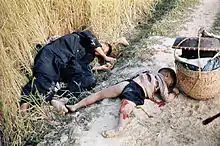 The Phoenix Program was coordinated by the CIA, involving South Vietnamese, US and other allied security forces, with the aim identifying and destroying the Viet Cong (VC) through infiltration, torture, capture, counter-terrorism, interrogation, and assassination.[94][95] The program was heavily criticized, with critics labeling it a "civilian assassination program" and criticizing the operation's use of torture.[96]: 341–343