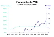 The VSB suffered, like many other companies, during the economic crisis of the late 1870s. Its stock prices dropped massively. In contrast to the NOB or the Swiss Central Railway, the VSB were able to distribute modest dividends from 1871 onwards. Because the VSB was not able to expand its network after 1859, it had low debt and its financial situation was very solid.