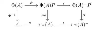 Here ψ is the map that sends a to aP, α0 denotes the restriction of α to Φ(A)P, ι denotes the inclusion map.