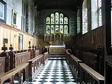 The castle's northern wing originally contained a dining hall, but this was later divided up to make more luxurious quarters for the Prince Bishop.[27] This area is also home to the two chapels of the college. The Norman Chapel dates from the 11th century and is the oldest accessible part of the castle, and retains its original Saxon architectural style. The Tunstall Chapel is the larger of the two; it dates from the 15th century and is named after Cuthbert Tunstall. It houses the college organ. Both chapels are used for worship within the college.[28] University College is one of two colleges in Durham to have two chapels, the other being Hild Bede.