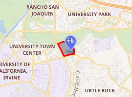 Residents of the UC Irvine student family housing units (Palo Verde and Verano Place) are zoned to University High School. University High School also serves the neighborhoods of Shady Canyon, Quail Hill, Laguna Altura, Turtle Ridge, Turtle Rock, University Park, some areas of Westpark, and apartment complexes near UCI.[42][43]