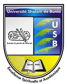 Shalom University of Bunia (French: Université Shalom de Bunia), also known as USB, is a private Christian university located in the city of Bunia, in the Democratic Republic of Congo (DRC). With an enrolment of over 1100 students for the 2019/20 academic year,[1] it is one of the largest universities in the city of Bunia, along with Bunia University (UNIBU). It currently has six faculties offering 35 majors.[2] It is one of 11 universities authorized to offer doctoral studies in the DRC.[3]