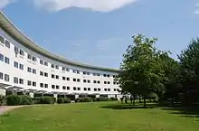 The campus is regularly evolving, and now stretches across the Norwich Research Park with the Edith Cavell Building and the Bob Champion Research and Education Building considered part of its campus over by the Norfolk and Norwich University Hospital.[43] Newest buildings on the campus include two new accommodation blocks, and the Enterprise Centre, said to be Britain's greenest building.[44]