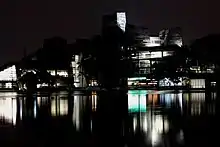 An amphitheater is part of the landscape of the library, located on the lakefront to be used as an additional public realm. This amphitheater with mature mahogany trees conceptually represents the circular landform eroded on the lakeside. This feature identifies the main entrance to the library, as well as the lightwell for the library. Cultural performances or social gatherings are often held in the auditorium.[2]