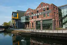 The Great Central Warehouse building was built in 1907 by the Great Central Railway. It spent the second half of the 20th century as a builder's warehouse, before falling into disrepair in 1998. It was converted into a library by the university's in-house team of architects and was formally opened in 2004 by the chief executive of the UK's Quality Assurance Agency for Higher Education. In 2005, the conversion won gold and silver for conservation and regeneration at the Royal Institution of Chartered Surveyors (RICS) Regional Awards in Leicester.[37] It has also gained awards from the Royal Institute of British Architects (RIBA).[38]