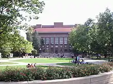 Before the university's first years, books were stored in various places around campus, including at the Law School and in various professors' homes.[5] In 1856, the North Wing of the University Building was remodeled, and books centralized in the University's Library and Museum there.[5] In 1863, the Library moved to the Law Building.[5] In 1883, with Raymond Cazallis Davis (chief librarian) as a motivating force in it accomplishment, the university's first library building was completed. Within twelve years of its construction the building was already too small for the growing collection.[5] Between 1870 and 1940 the collection grew rapidly, from 17,000 to 941,500.[5]