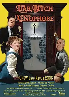 Students produce a number of comedy revues at the University of New South Wales in Sydney, Australia each year. Written and performed by students, the shows comment satirically on current affairs, pop culture, dating and university life. They feature song parodies, short sketches, video segments and dance numbers. The first revue at the university, entitled Low Notes, was organised by the Students' Union in 1956.[1] The first revue by the UNSW Medical Society Revue, held in 1975, was entitled Rumpleforeskin and was quickly followed by the UNSW Law Revue Society's The Assault and Battery Operated Show.