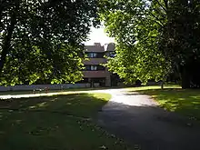 Partial view on BU Lettres et droit and rear of Présidence building from the lawn