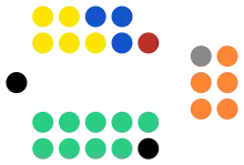 In 2019, the UQ Union Council is made up of 23 student representatives elected from five electoral groups, spanning from five different student factions, plus an independent.[15]