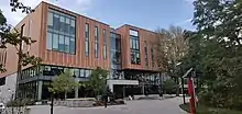The Maanjiwe nendamowinan building, abbreviated MN, is the newest building at UTM, and was built in place of the demolished North building. The building was opened in September 2018 as the New North building. On August 22, 2019, the university announced that the building would be renamed to Maanjiwe nendamowinan after consulting with the Mississaugas of the Credit First Nation. The name means "gathering of minds" in the Anishinaabemowin language.[46][47] Maanjiwe nendamowinan has a floor space of 20,500 square metres (220,600 sq ft) and is six stories tall. MN has a Leadership in Energy and Environmental Design (LEED) Silver certification for its sustainability features, including rainwater recycling, energy-efficient mechanical systems, a green roof, and bird-safe glass.[48] In 2021 it won a Citation Award from the American Institute of Architects (AIA), Canada Society chapter.[48] Also in 2021, the building received an Award of Merit from the City of Mississauga Urban Design Awards.[49]