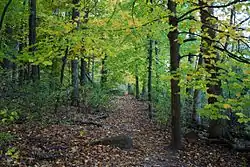 - Lost City Forest – mixed woodlands. Originally was intended to be a housing development named Lake Forest in the 1920s, the developer went bankrupt and abandoned the land. There are still some concrete foundations and sidewalks visible in the area.[8]