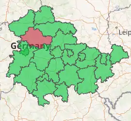 Unstrut-Hainich-Kreis is a Kreis (district) in the north of Thuringia, Germany. Neighboring districts are (from the north clockwise) the districts Eichsfeld, Kyffhäuserkreis, Sömmerda, Gotha, Wartburgkreis and the district Werra-Meißner in Hesse.