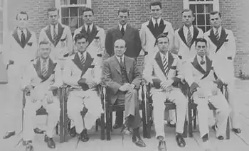 The Board of Stewards was instituted in 1892, just one year after the college moved to its new Deer Park campus; and the Stewards' Blazer began its use five years later.[1] The design of the jackets was not without criticism, letters to the editor of the College Times complained that they were "the cynosure of everyone's eye - But so is the uniform of the door man at the Park Plaza."[2]