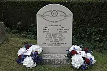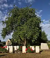 In 1919 or 1920 a new parish cemetery was opened immediately northeast of St Mary's churchyard, on the opposite side of Church Walk.[11] In the Second World War an area in the southwest corner of the new cemetery, nearest the church, was reserved for Imperial War Graves Commission burials. 40 airmen from RAF Upper Heyford are now buried here, including eight from the Royal Canadian Air Force and two from the Royal New Zealand Air Force.[11] Not all RAF Upper Heyford burials are here. Another 26 are in the churchyard of the neighbouring parish of All Saints, Middleton Stoney.[12]