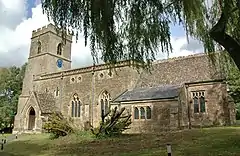 The village had a church by 1074. Inside the current Church of England parish church of St Mary is a 14th-century recumbent effigy of a priest in a 14th-century arched recess in the chancel. The church may have been rebuilt in the latter part of the 15th century, but only the Perpendicular Gothic west tower survives from that time. Major repairs to the roof and south aisle were made in 1668 and 1769, but by the 1860s the nave and chancel were in a poor condition again.[2] In 1865 the church was demolished except for the west tower. A new church, designed by the architect Thomas Talbot Bury in a Gothic Revival interpretation of Perpendicular Gothic, was built in its place and completed in 1867.[3] This Victorian building has very regular coursed masonry, which departs conspicuously from the traditional Medieval rubble masonry of the tower and, presumably, the demolished parts of the previous church.