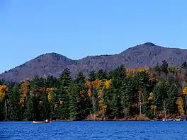 ![]() A guideboat on Upper St. Regis Lake, Saint Regis Mountain behind. | |