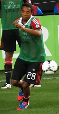 At the start of the 2008–09 season, Emanuelson started in the first three matches, playing once in the centre–midfield position and twice in the left–back position before missing two matches due to illness.[52] He returned to the starting line–up against SC Heerenveen on 5 October 2008, and played the whole game, as Ajax lost 5–2.[53] Emanuelson then contributed five assists for the club by the end of the year.[54] On 21 December 2008 he scored his first goal of the season, in a 6–0 win against De Graafschap.[55] By November, Emanuelson began playing in different midfield positions for Ajax.[56] But at one point, he did play in the left–back position against NEC Nijmegen on 18 January 2009, as the club won 4–2.[57] His second goal of the season came on 15 February 2009, in a 2–0 win against rival, Feyenoord.[58] After missing one match due to a stiff neck Emanuelson sustained during a UEFA Cup third round first leg against Fiorentina and set up the only goal of the game in a 1–0 win, he returned to the starting line–up in the return leg against them and helped the side go through to the next round following a 1–1 draw.[59] By March, Emanuelson then publicly criticised Manager Marco van Basten for his substitution policy after he was substituted five times in the last eight league matches.[60] Emanuelson then scored his third goal of the season, in a 7–0 win against Willem II on 12 April 2009.[61] During a 6–2 loss against PSV Eindhoven in a follow–up, he suffered a suspected ankle injury that saw him substituted in the 38th minute.[62] But Emanuelson was given all clear after the medical team said his injury was not bad as first thought.[63] Despite suffering another injury later in the 2008–09 season, he continued to remain involve in the last remaining matches and scored his fifth goal of the season, in a 1–0 win against FC Twente in the last game of the season.[64] Following this, Emanuelson went on to make forty–two appearances and scoring four times in all competitions.