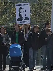 These actions brought her the nickname "Zensursula", a portmanteau word blending the German word for censorship ("Zensur") and her given name ("Ursula").[166] The combination of a sensitive topic like child pornography and internet censorship is said to have caused a rising interest in the Pirate Party.[167]