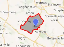 The village lies in a rural setting in the valley of the River Viosne, some 40 km north-west of Paris, within the Vexin Regional Nature Park. The commune is bordered by those of Ableiges, Marines, Santeuil, and Vigny. The nearest shopping centre is at Marines.