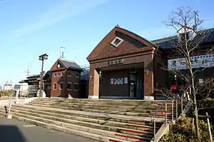The station consists of two side platforms serving two tracks. The station building is a brick structure resembling a traditional warehouse. Besides a staffed ticket windown, the waiting room doubles as an exhibition area featuring local products. Access to the opposite side platform is by means of a footbridge.[3][2]