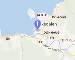 Uskedalen Church (Norwegian: Uskedalen kyrkje) is a parish church of the Church of Norway in Kvinnherad Municipality in Vestland county, Norway. It is located in the village of Uskedal. It is the church for the Uskedalen parish which is part of the Sunnhordland prosti (deanery) in the Diocese of Bjørgvin. The white, wooden church was built in a long church design in 1914 using plans drawn up by the architects Olaf Nordhagen and Engel Sundfjord. The church seats about 226 people.[1][2]