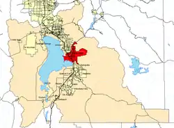 Utah County is one of two counties forming the Provo-Orem metropolitan statistical area, and is part of the larger Salt Lake City-Provo-Orem, UT Combined Statistical Area. In 2010, the center of population of Utah was in Utah County, in the city of Saratoga Springs.[3]