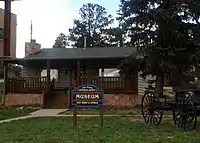 The Pikes Peak Museum comprises six buildings that tell the history of the pass, people who traversed it, and the communities founded along the pass. The buildings include the museum center, four cabins and a jailhouse, with exhibits that convey the lifestyle, industries, transportation, and communities along Ute Pass. Its exhibits includes information about the Ute people and early pioneers.[8]