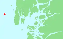 The 5.9-square-kilometre (2.3 sq mi; 1,500-acre) island makes up almost all of Utsira municipality. The island lies about 18 kilometres (11 mi) west of the island of Karmøy, with the Sirafjorden lying between the two islands. The island is only connected to the mainland by ferry. There are four regular ferry routes connecting the island to the town of Haugesund each day. The ferries are operated by Rutebåten Utsira.[1]
