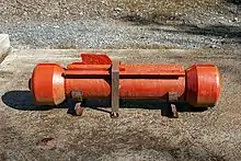 The magnetic compass was located near the front of the V1, within a wooden sphere. Just before launch, the V1 was suspended inside the Compass Swinging Building (Richthaus). There the compass was corrected for magnetic variance and magnetic deviation.[24][25]