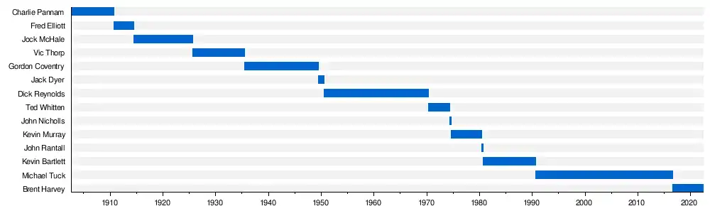 | 29 | Kevin Murray | 333‡ | Fitzroy‡ | 18.50 | 1955–1964, 1967–1974 | [31] |