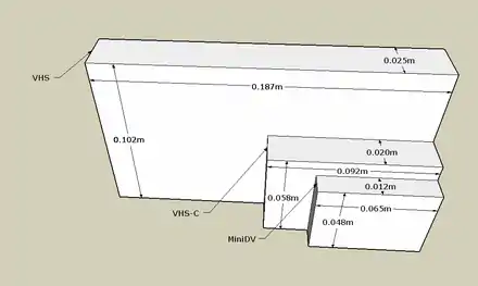 VHS-C is the compact VHS videocassette format, introduced by Victor Company of Japan (JVC) in 1982,[1] and used primarily for consumer-grade compact analog recording camcorders. The format is based on the same video tape as is used in VHS, and can be played back in a standard VHS VCR with an adapter.[2] Though quite inexpensive, the format is largely obsolete even as a consumer standard and has been replaced in the marketplace by digital video formats, which have smaller form factors.