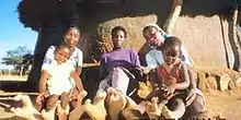 Historically, the vaDoma chiefly dwelt in the mountains, living a largely nomadic lifestyle of hunting, fishing, trapping, honey hunting, and gathering wild fruits and roots.[5] Prior to the European colonization of Africa, the vaDoma also resisted incorporation into the Korekore Shona kingdom of Mutapa,[2] which resulted in little access to fertile land.[6] Land reform after Zimbabwe's independence did not change this, despite pressure from the Mugabe government, and the vaDoma's continuing dispossession has made them Zimbabwe's only non-agricultural society, leading to stereotypes as "Stone Age cave-dwellers".[7]