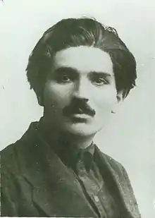 Vagarshak Arutyunovich Ter-Vaganyan (Armenian: Վաղարշակ Հարությունի Տեր-Վահանյան, 1893–1936) was an Armenian Soviet Communist Party leader, journalist and functionary who was one of the first victims of Joseph Stalin's Great Purge. Ter-Vaganyan was one of sixteen Soviet intellectuals who stood as defendants during the Moscow Show Trials.[1] He was accused of being part of the Trotskyite-Zinovievite centre which allegedly prepared terrorist acts against Stalin, Klim Voroshilov, Andrei Zhdanov, Lazar Kaganovich, Sergo Ordzhonikidze, Stanislav Kosior, and Pavel Postyshev.[2] Under pressure, Ter-Vaganyan admitted his "guilt."[3] He was shot and his personal property was confiscated by the Soviet Union.[4]
