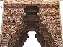 A number of temples were built during their reign by wealthy merchants and ministers, Vastupala and Tejapala who also served as ministers and generals, including one of Dilwara Temples at Mount Abu and Girnar Jain temples.[26] In fact, Kirtikaumudi, the biography of Vastupala, written by Someshvara (1179-1262), a royal priest, is also an important source of the history of the dynasty.[27][22] Visala-deva constructed or restored the fort of Dharbhavati (Dabhoi) which is well known for its elaborate carvings and gates.[22] He built pratolis, temples and vapis in Darbhavati (Dabhoi) completed by about 1255 CE. Of its four gates, Hira Bhagol (with its adjacent temples) may have been built during Visaladeva's reign while three other gates may have been built by Tejapala, as indicated in Jain prabandhas.[28] The Satmukhi stepwell in Dabhoi is a temple built over a tank with seven wells ascribed to him.[29]