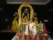 The temple is dedicated to Lord Vishnu referred to as Vaikuntanatha Swamy. The garbhagriha hosts deities of Vaikuntanatha swamy along with Sridevi and Bhudevi on either side.