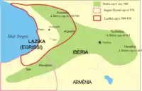 By espousing pro-Roman policy, Vakhtang further alienated his nobles, who sought Iranian support against the king's encroachments on their autonomy. In 482, Vakhtang put to death his most influential vassal, Varsken, vitaxa of Gogarene, a convert to Zoroastrianism and a champion of Iran's influence in the Caucasus, who had executed his Christian wife, Shushanik, daughter of the Armenian Mamikonid prince Vardan II and a hero of the earliest surviving piece of Georgian literature. By this act, Vakhtang placed himself in open confrontation with his Iranian suzerain. Vakhtang called on the Armenian princes and the Huns for co-operation. After some hesitation, the Armenians under Vardan's nephew Vahan Mamikonian, joined forces with Vakhtang. The allies were routed and Iberia was ravaged by Iranian punitive expeditions in 483 and 484, forcing Vakhtang into flight to Roman-controlled Lazica (modern western Georgia). After Peroz's death in the war with the Hephthalites in 484, his successor Balash reestablished peace in the Caucasus. Vakhtang was able to resume his reign in Iberia, but did not betray his pro-Roman line.[9][10]