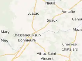 Val-de-Bonnieure (French pronunciation: [val də bɔnjœʁ], literally Valley of Bonnieure) is a commune in the department of Charente, southwestern France. The municipality was established on 1 January 2018 by merger of the former communes of Saint-Angeau (the seat), Saint-Amant-de-Bonnieure and Sainte-Colombe.[2]