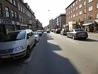 Valby Langgade is one of the main streets of the Valby district of Copenhagen, Denmark. The circa 3.2 km long street runs from the southern end of Pile Allé and the Carlsberg neighbourhood in the east to Roskildevej at Damhus Lake in the west. The square and side street Valby Tingsted was the centre of the original village of Valby.