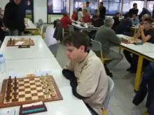 Valentin Lyubomirov Iotov (Bulgarian: Валентин Любомиров Йотов, also transliterated Yotov;[1] born 6 September 1988 in Pleven) is a Bulgarian chess player received the FIDE title of Grandmaster in 2008.[2] He has represented his country in Chess Olympiads and was the Bulgarian chess champion for 2006.[3] In August 2014, Yotov played on Board 3 for Bulgaria at the Chess Olympiad in Tromsø, scoring 8/11 points for a performance rating of 2741, narrowly missing out on an individual bronze medal.[4][5]