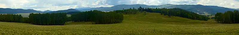 The Valle Vidal (Spanish, "Valley of Life") is a 101,794 acres (41,195 ha) mountain basin in the Sangre de Cristo Mountains within the Carson National Forest, northwest of Cimarron, New Mexico. Elevations in the basin range from 7,700 to 12,554 feet (2,347 to 3,826 m).[1] Valle Vidal is noted for its pristine scenery and wildlife. It was protected from oil and gas exploitation by an act of Congress in 2006. The Valle Vidal borders on Vermejo Park Ranch, Philmont Scout Ranch, and other private lands.