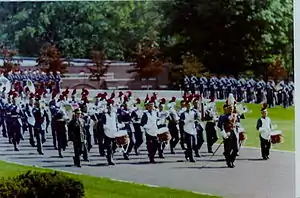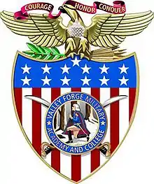 Valley Forge Military Academy was founded in 1928 by Lieutenant General Milton G. Baker, Pennsylvania Guard (Retired).[1] For the first five months of its existence, the school was located in Devon, Pennsylvania, on the south side of Berkley Road, between Dorset and Waterloo roads, which is several miles away from the campus's current location.[2] After a fire during the night of January 17–18, 1929 destroyed the original single-building campus, the former Devon Park Hotel, the academy was moved to its present site in Wayne, Pennsylvania, the former Saint Luke's School.[3] The highest decoration in the institution, the Order of Anthony Wayne, was made in tribute to the heroism of the first Corps of Cadets on the night that the first campus burned down.