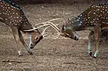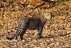 The wildlife found in the forest of VTR are the Bengal tiger,[7][8] Indian rhinoceros, Asiatic black bear, Indian sloth bear,[9] otter, Indian leopard, wild dog, wild water buffalo, and wild boar. There are several species of deer, including barking deer, spotted deer, hog deer, Sambar, blue bull. Apart from that the striped hyena, leopard cat, fishing cat, langur, monkey, flying squirrel, clouded leopard, Indian gaur, mongoose can also be sighted. The tiger's population in the Reserve was 10 in 2010, which increased to 22 in 2013 and then 40 in 2018.[3]