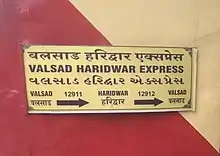 The 12911 / 12912 Valsad–Haridwar Superfast Express is a Superfast Express train belonging to Indian Railways – Western Railway zone that runs between Valsad and Haridwar Junction in India.[1][2][3][4]
