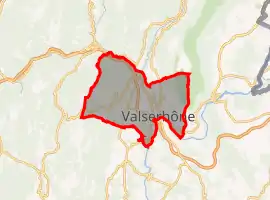 listen)) is a commune in the Ain department in the Auvergne-Rhône-Alpes region in Eastern France. It is the result of the merger, on 1 January 2019, of the communes of Bellegarde-sur-Valserine, Châtillon-en-Michaille and Lancrans.[2] In 2018, the three communes had a combined population of 16,431, with Bellegarde-sur-Valserine as the major population centre. This makes Valserhône the third-most populated commune of Ain, after Bourg-en-Bresse and Oyonnax.