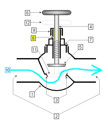 In some valve designs, the pressure of the flow fluid itself or pressure difference of the flow fluid between the ports automatically controls flow through the valve.