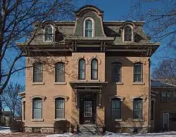 The building's Second Empire architecture is reflected in its mansard roof and imposing size. The original cost to build the house was an exorbitant $25,000.[1]