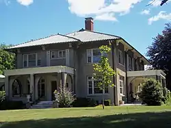 Because the neighborhood was relatively affluent several of the houses were designed by prominent local architects, and three of them lived near the park.[2] Rudolph Clausen, of Clausen & Burrows, lived in a Tudor-style house at 2330 Harrison Street. The firm also designed the H.G. Pape House at 2326 Harrison. Edward S. Hammatt, who designed multiple buildings for the Episcopal Diocese of Iowa, designed his house at 2313 Brady Street. Gustav Hanssen's house was located at 124 Rusholme Street. He also designed two Neoclassical-style houses at 2317 and 2319 Brady Street. Hanssen was in a partnership with Dietrich Harfst who designed the Henry Deutsch House at 2101 Main Street (no longer extant) and the C.E. Hanssen House at 2322 Harrison Street in the American Craftsman style. A third house attributed to Hanssen and Harfst is the Henry Heubotter House at 2116 Main Street, which is a rambling version of the American foursquare. Although they didn't live in the neighborhood, Temple and Burrows designed the Georgian Revival E.C. Mueller House at 2136 Brady Street.
